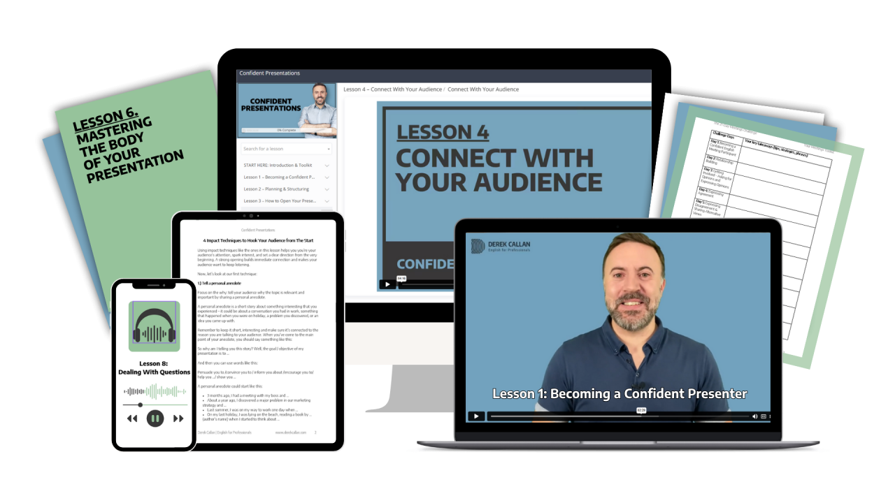 After each lesson, you’ll complete one practical task: adding your favourite phrases and techniques to your Presentation Toolkit - a personalised resource you’ll come back to again and again.
